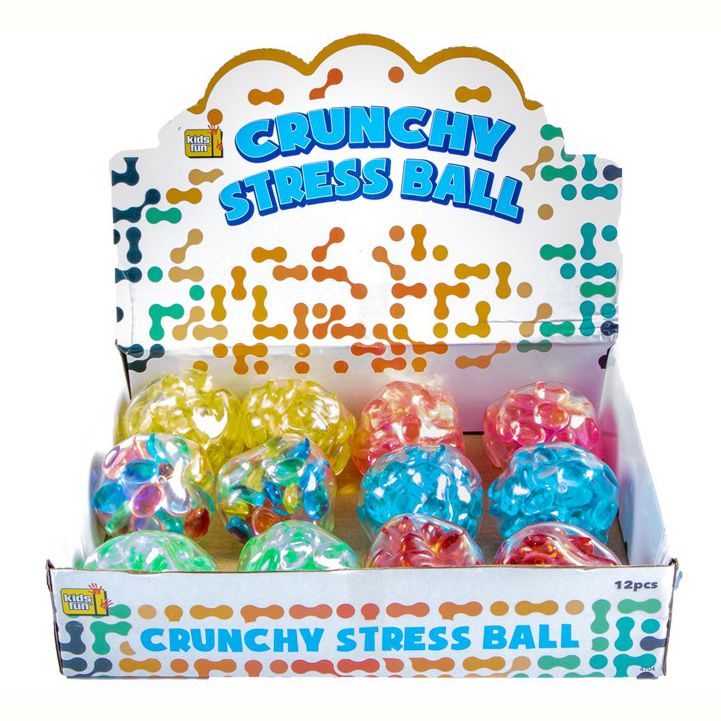 Crunchy klemmebolden er en innovation indenfor stressboldverdenen. Hvor man tidligere altid har fokuseret på en stille oplevelse, får du her noget helt andet. Crunchy klemmebolden er ikke fyldt med nogen væske, der giver modstand. I stedet for er den fyldt med store perler (ca. 1cm hver) i smukke farver, som næsten ligner ædelsten. Hver gang du klemmer bolden, mærker du hver en af perlerne i din hånd og hører samtidigt lyden af perler, som støder mod hinanden. Det er netop denne crunchy lyd, som gør denne stressbold unik. Man har nemlig fundet ud af, at når personer med f.eks. autisme og ADHD bliver overbelastet af f.eks. larm eller andre form for stimuli, har de en tendens til at ty til selv at skabe larm. Det er deres måde at gardere sig imod de overvældende sanseindtryk udefra og samtidigt en måde at tage kontrol over larmen. De ensartede og gentagne lyde, som bolden producerer, fungerer desuden som ASMR-stimuli og hjælper brugeren med at stresse af.
