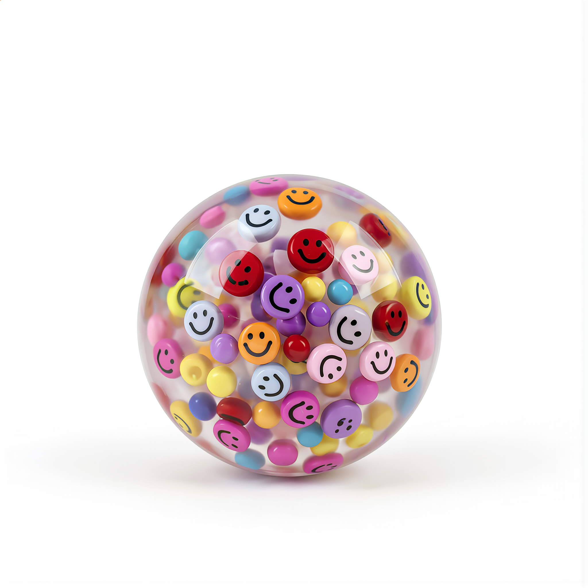 Smiley klemmebold til når du skal stresse af eller finde ro i pauserne. Den er meget speciel, da den er fyldt med en klar gel, hvori der flyder masser af små Smiley-perler i friske farver. Perlerne er lavet i plastik og det betyder, at du af og til kommer til at mærke til dem, samtidigt med at der kan komme en smule af de ensartede og rytmiske lyde, som man forbinder med ASMR.