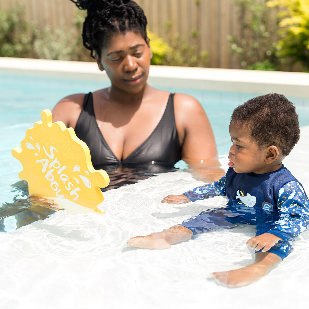 Spejlet er brudsikkert og vandtæt i den kendte kvalitet fra Splash About. Det har en kant og bagside i skum, som er formet på en måde, der gør det nemt at tage fat i.